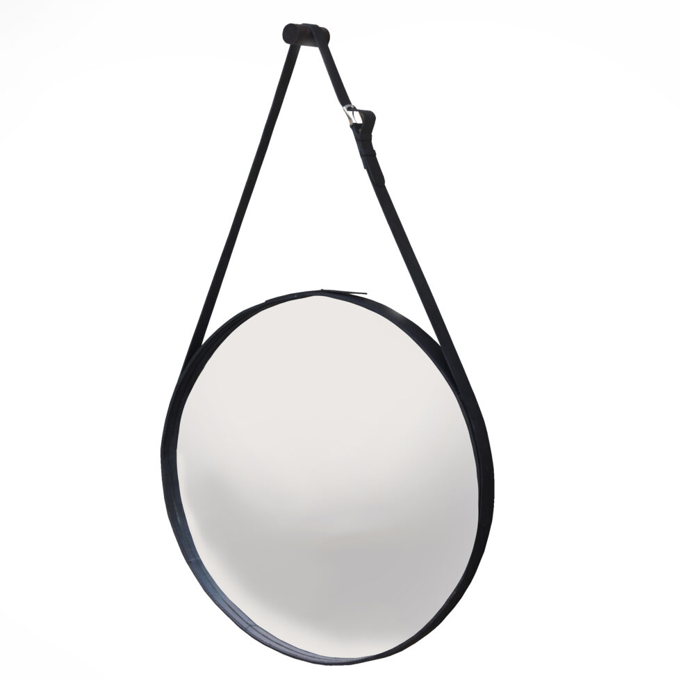 آینه دیواری با تسمه چرمی قطر 50 سانتیمتر