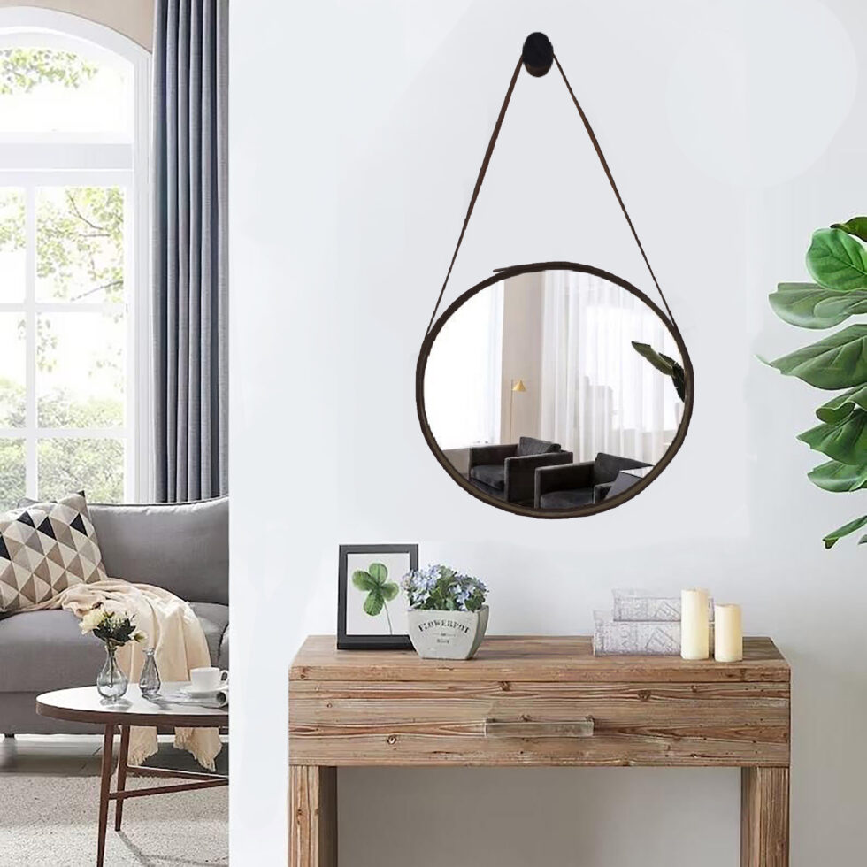 آینه دیواری با تسمه چرمی گل رز قطر 60 سانتیمتر