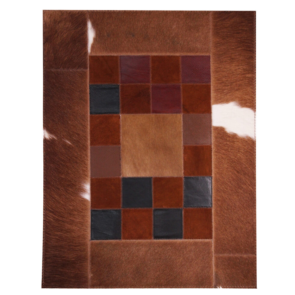 هر فرش یک کلاژ زیبا از قطعات چرم طبیعی است که با دقت و هنر بالا طراحی شده اند .