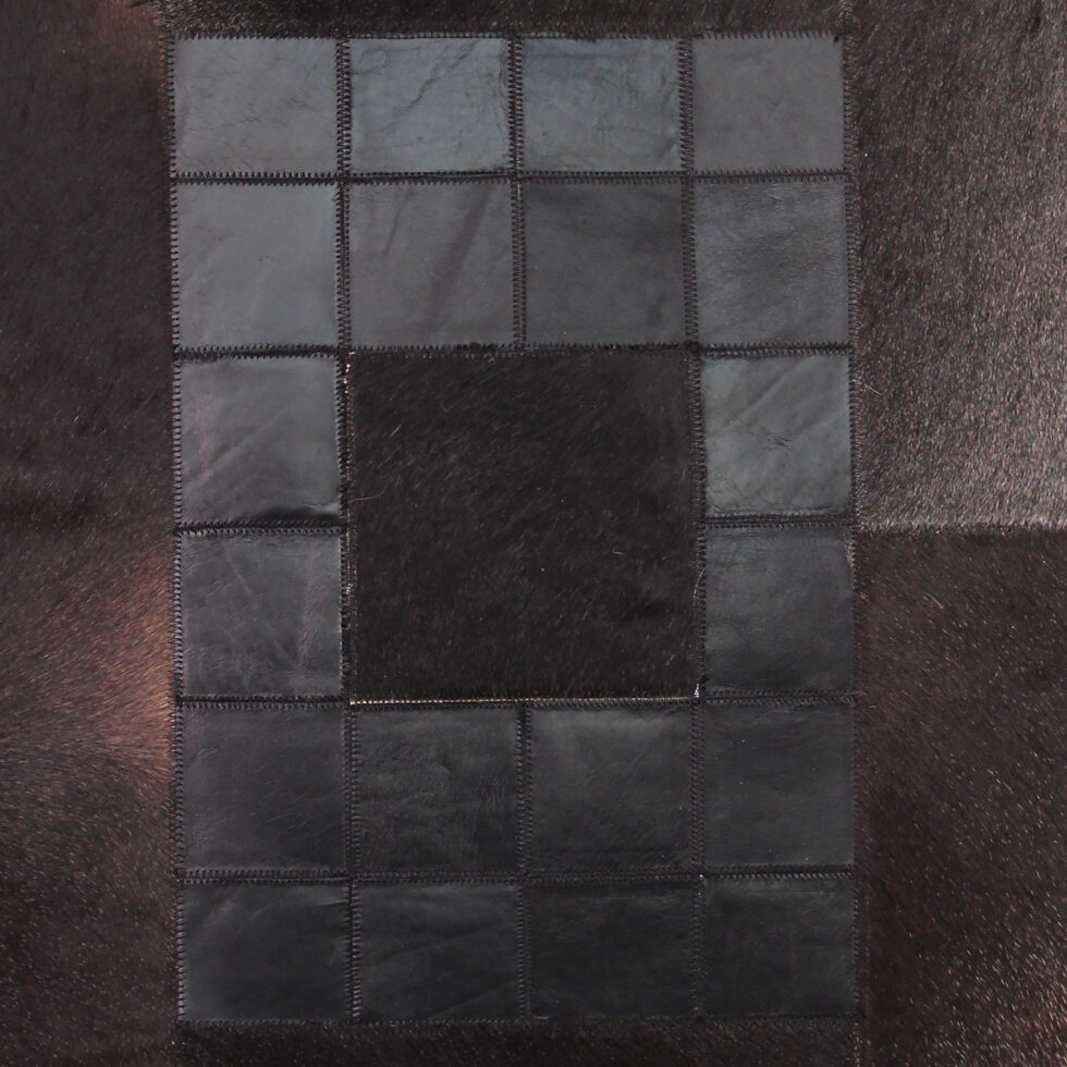 فرش چرم و کلاژ طبیعی با طرح هندسی ترکیبی از اصالت و طراحی مدرن .